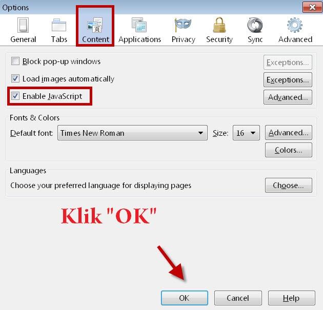 4. hilangkan tanda centang "enable Java Script", kemudian ok